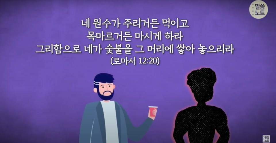 20 네 원수가 주리거든 먹이고 목마르거든 마시게 하라 그리함으로 네가 숯불을 그 머리에 쌓아 놓으리라