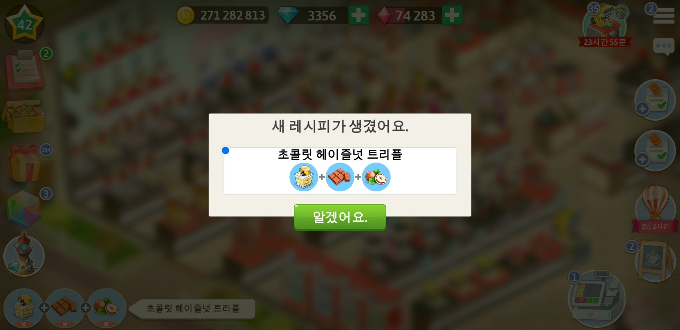 마이카페 42 레벨 레시피 - 트리플 진열장