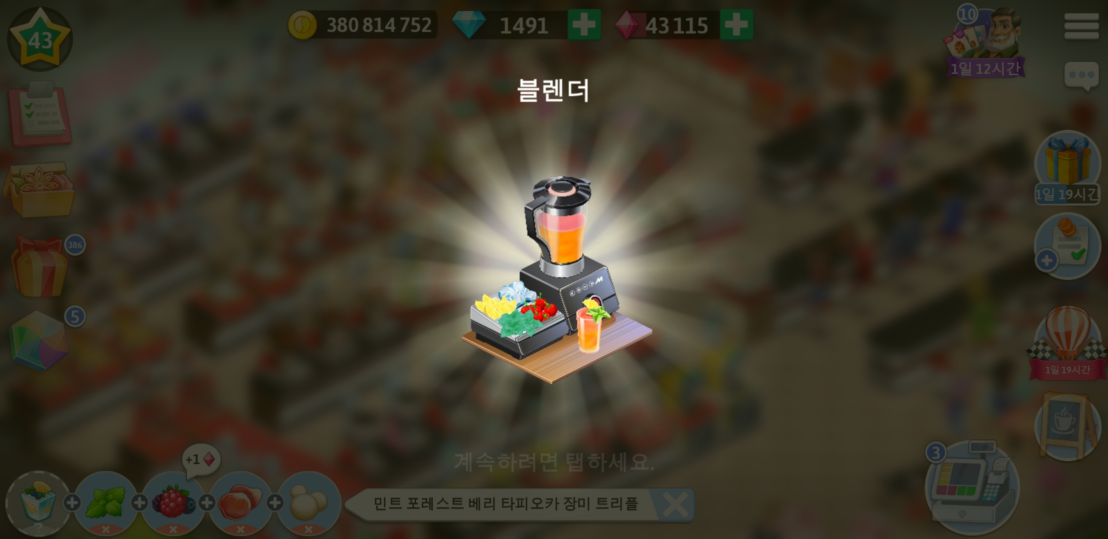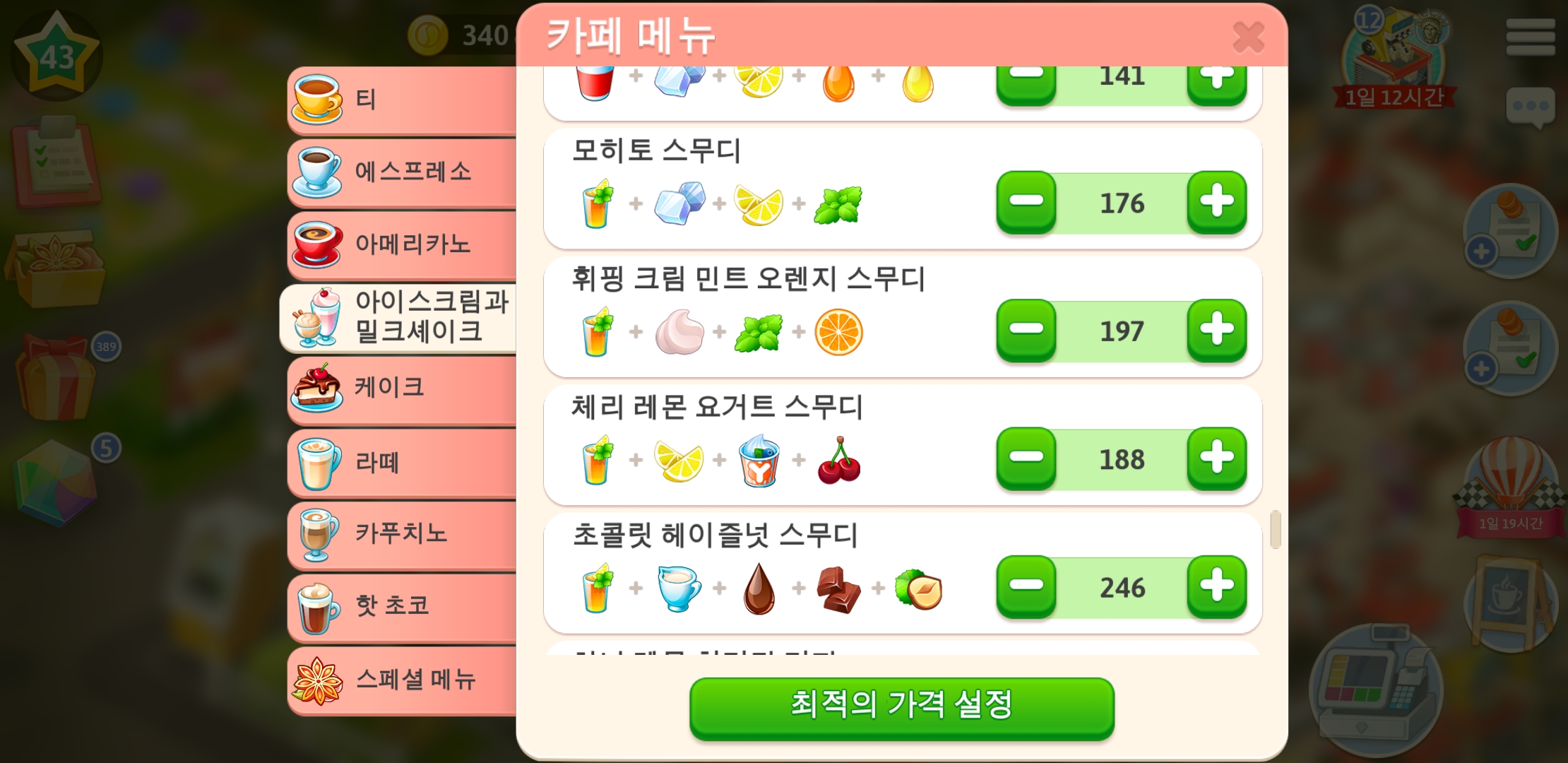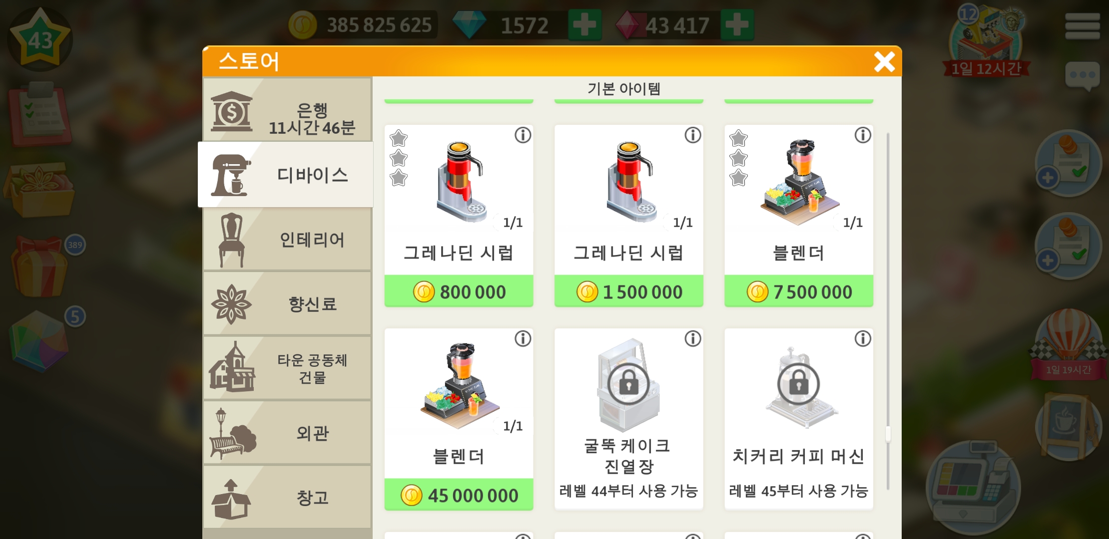 드디어 마이카페 43레벨이 되었습니다.