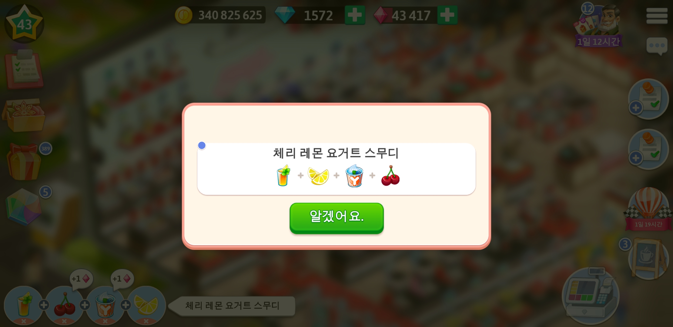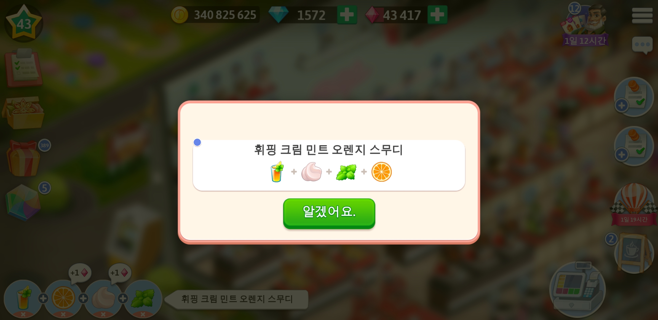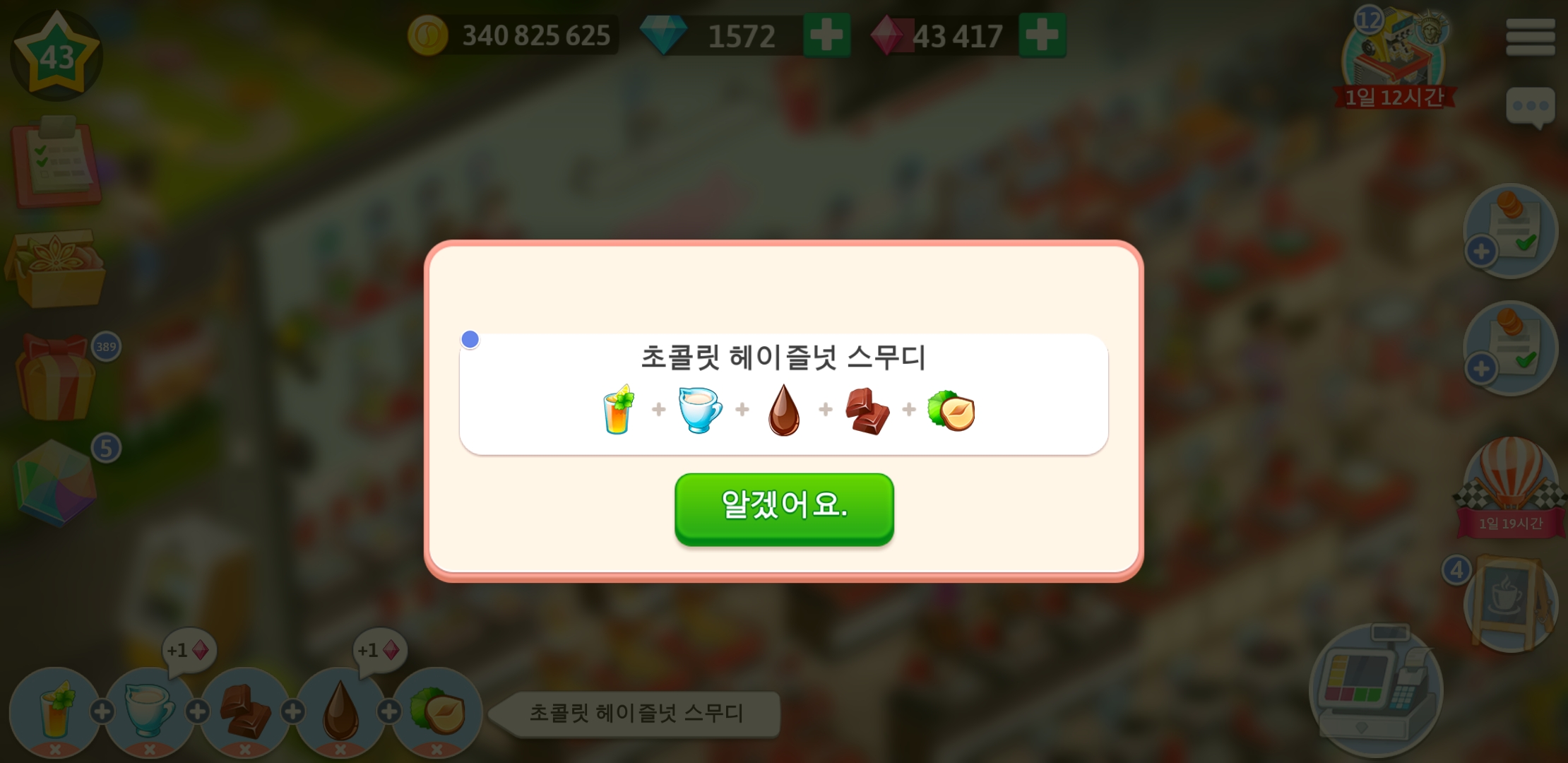마이카페 43레벨 레시피