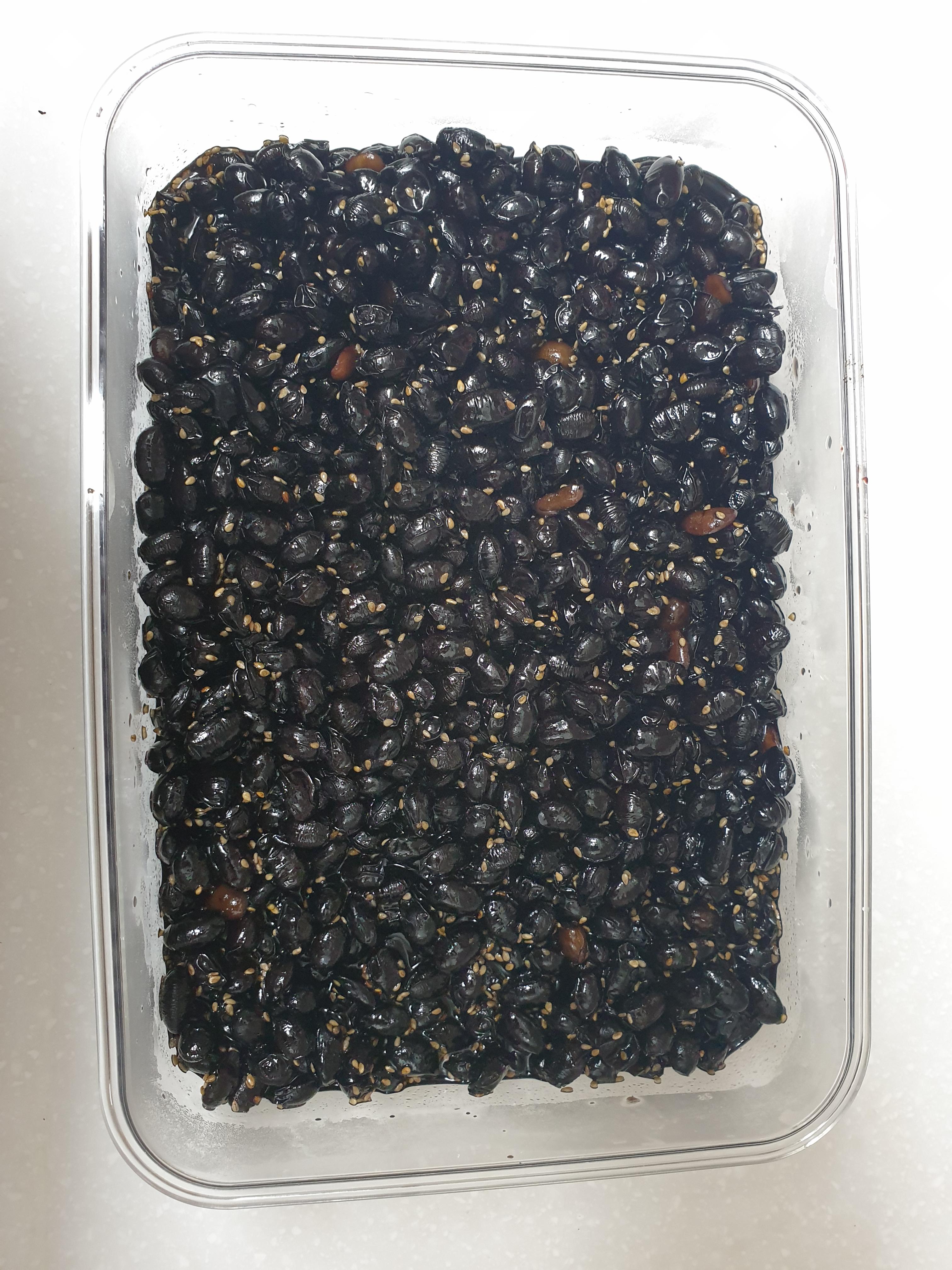 간장과 물 조청물엿을 넣고 뒤적여가며 조려주다가콩이 내가 좋아하는 식감으로 익고 양념이 배었다고 생각할때 참기름과 통깨를 뿌려주면 끝~