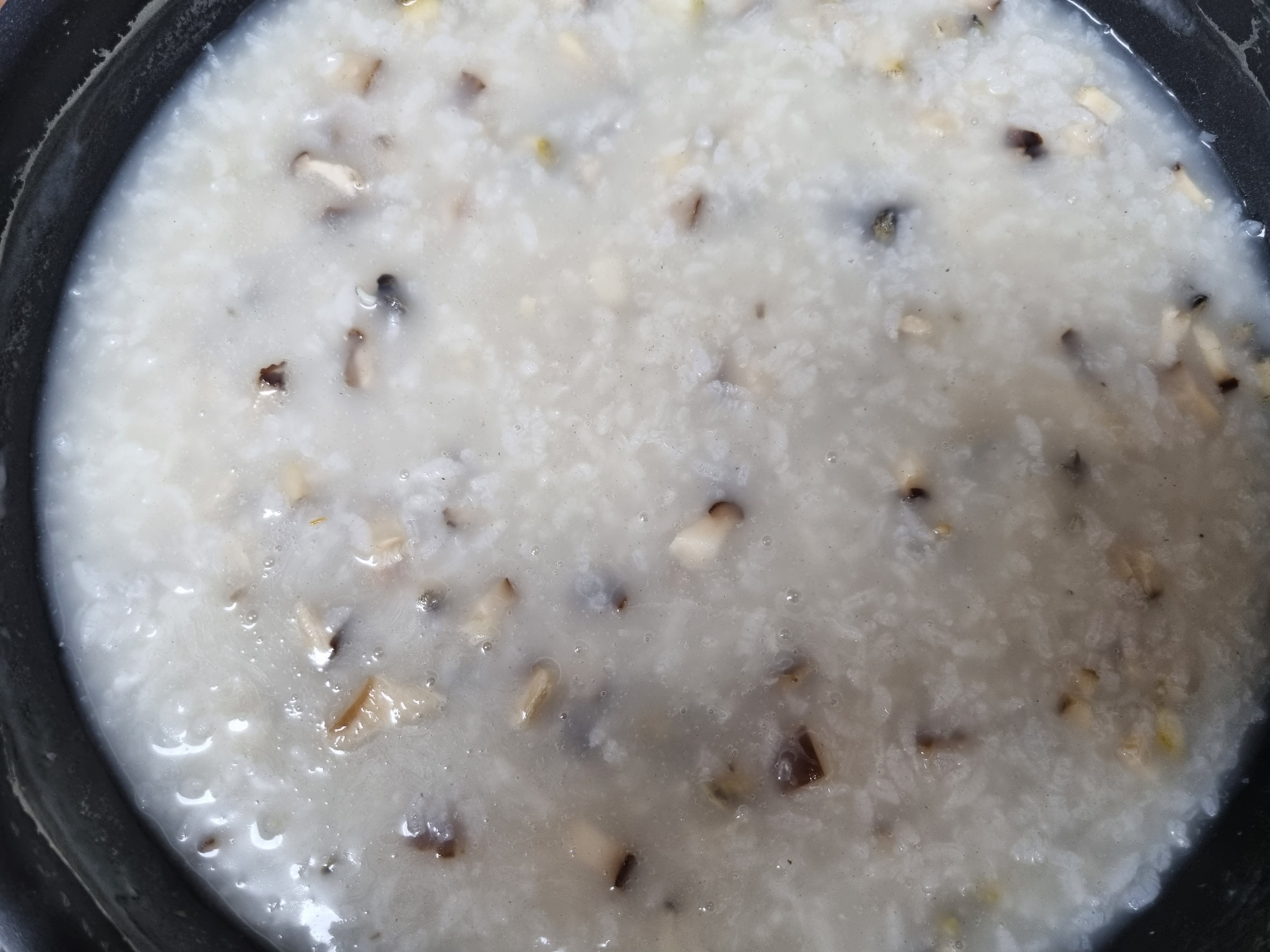 5. 채수를 조금씩 넣어 주면서 바닥에 눌지 않도록 한번씪 휘휘 져어주고 쌀이 퍼질때까지 기다렸다가 간을 해주면 죽이 완성이다.