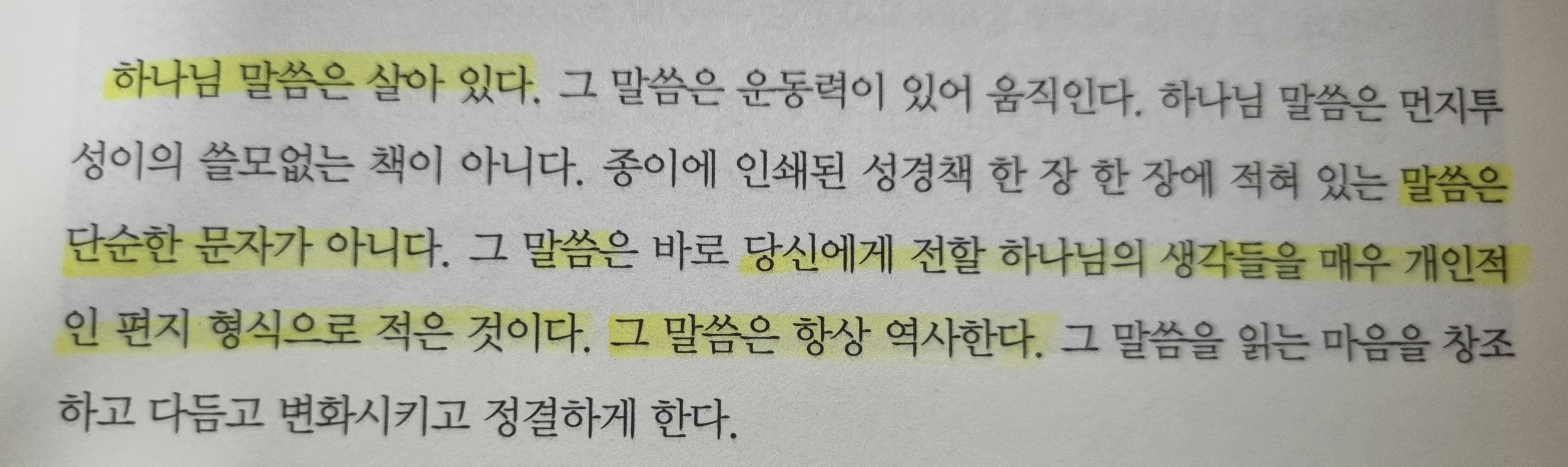 하나님의 말씀은 살아 있고 활력이 있어 좌우에 날선 어떤 검보다도 예리하여 혼과 영과 및 관절과 골수를 찔러 쪼개기까지 하며 또 마음의 생각과 뜻을 판단하나니