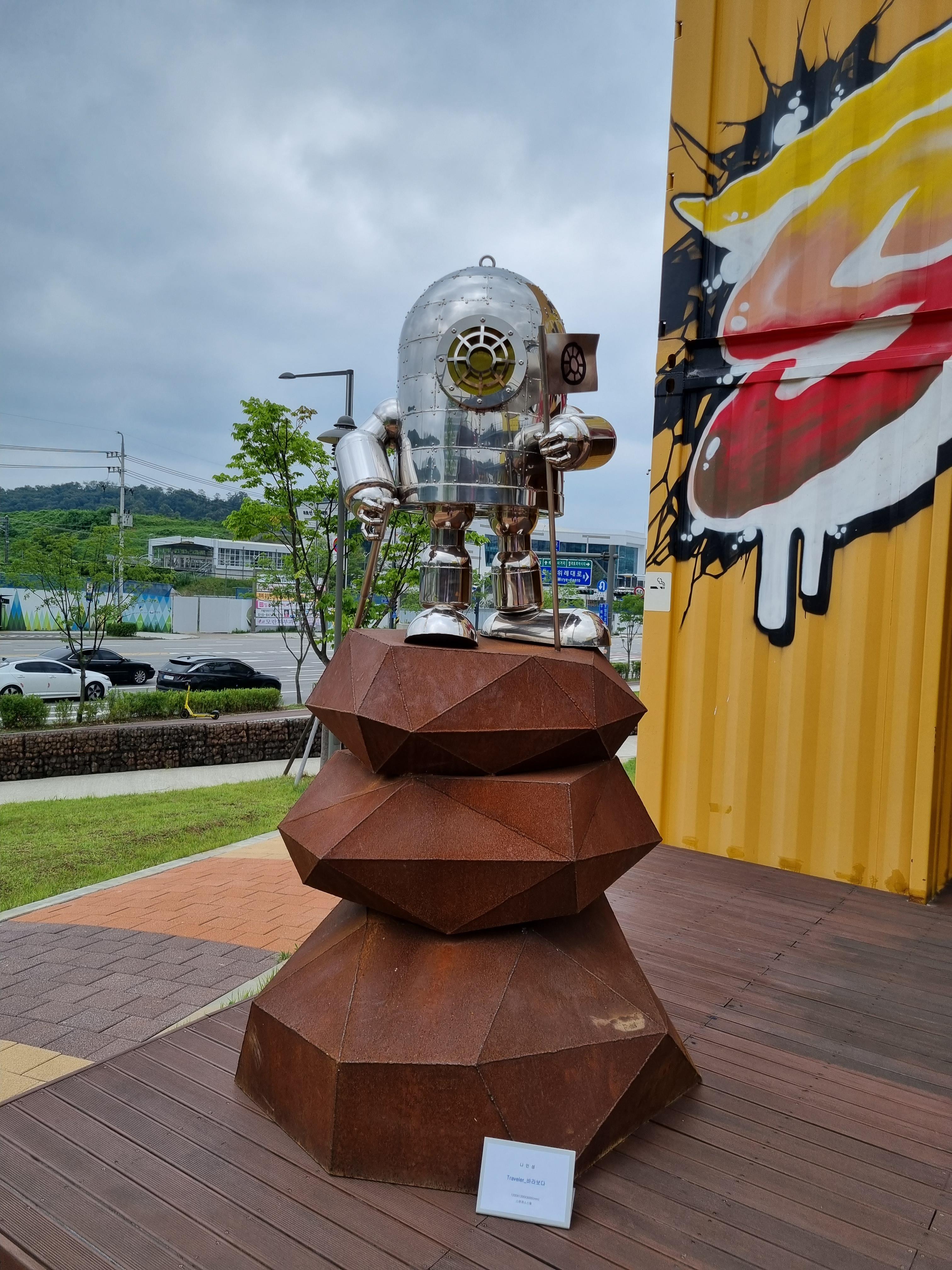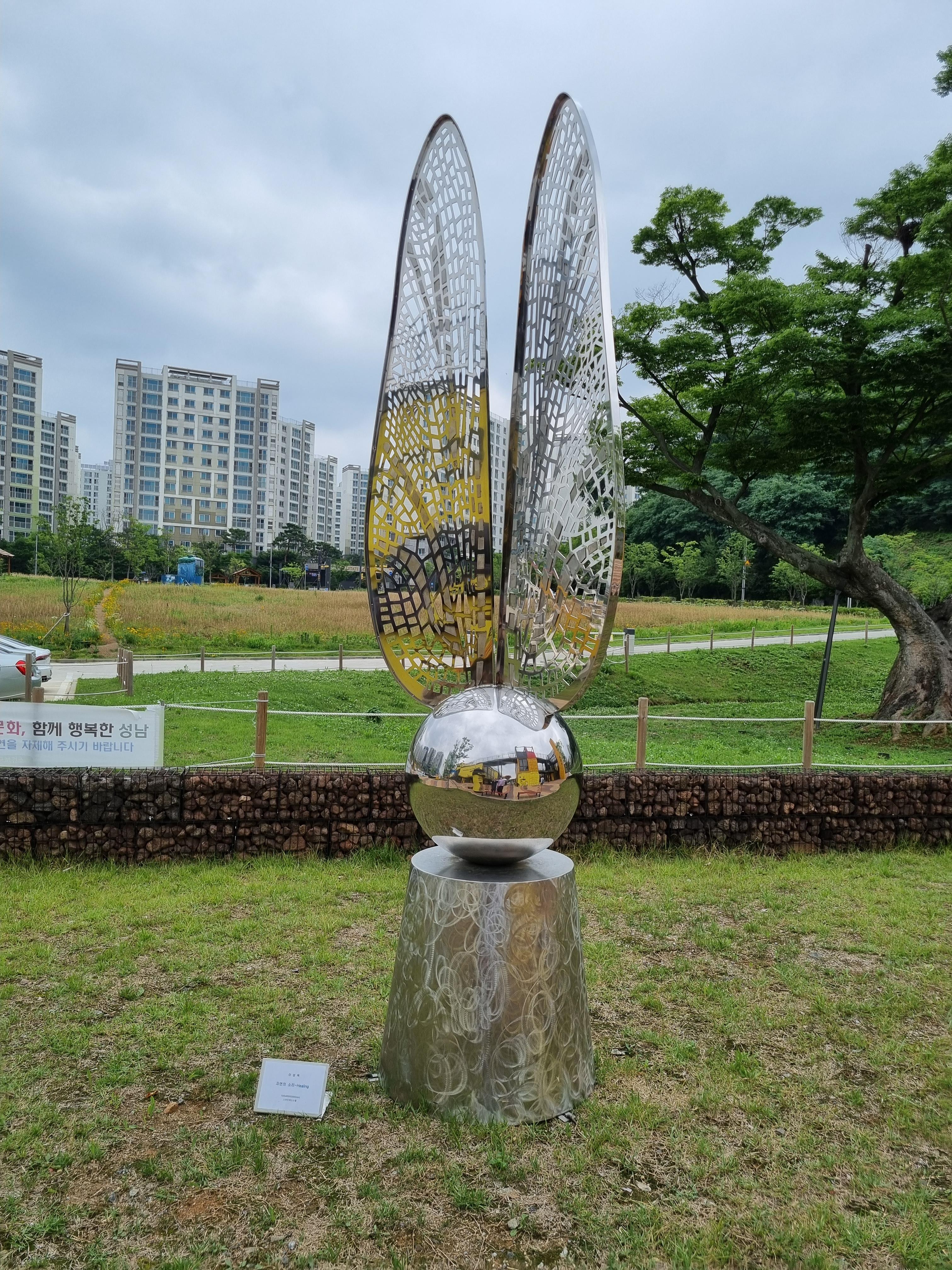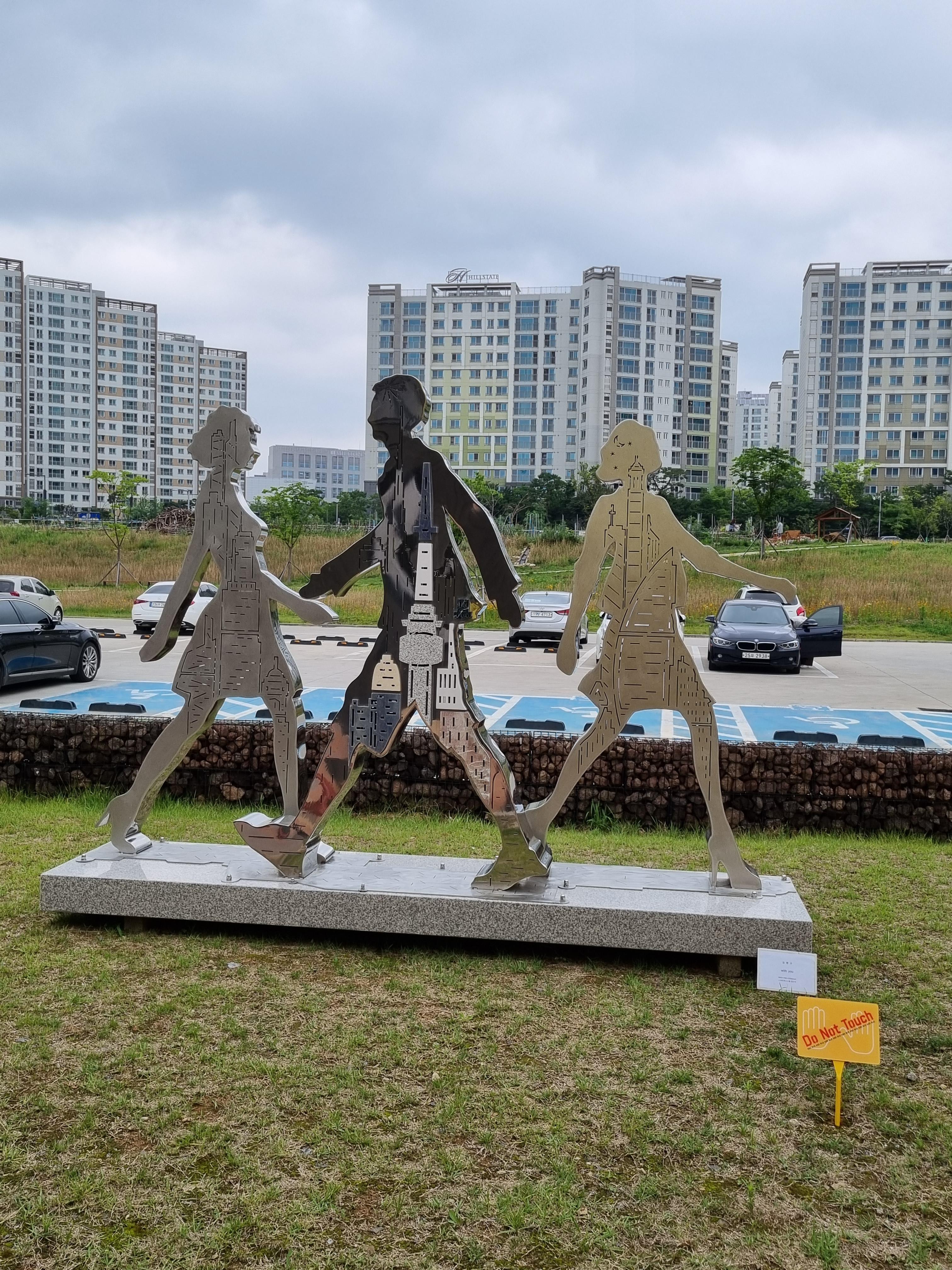 위례 스토리박스 앞 공원에 조각품들이 전시되어 있었다.
