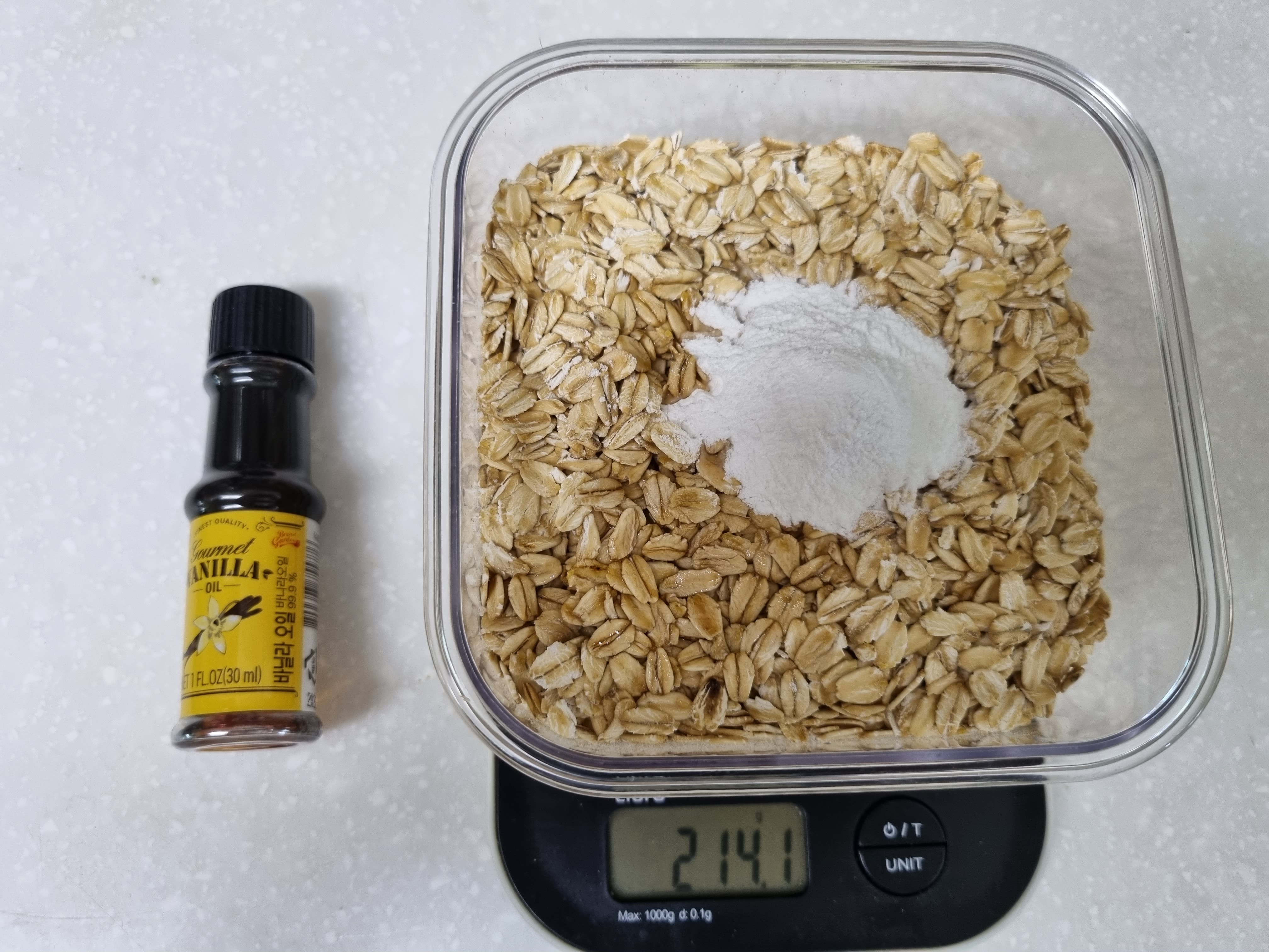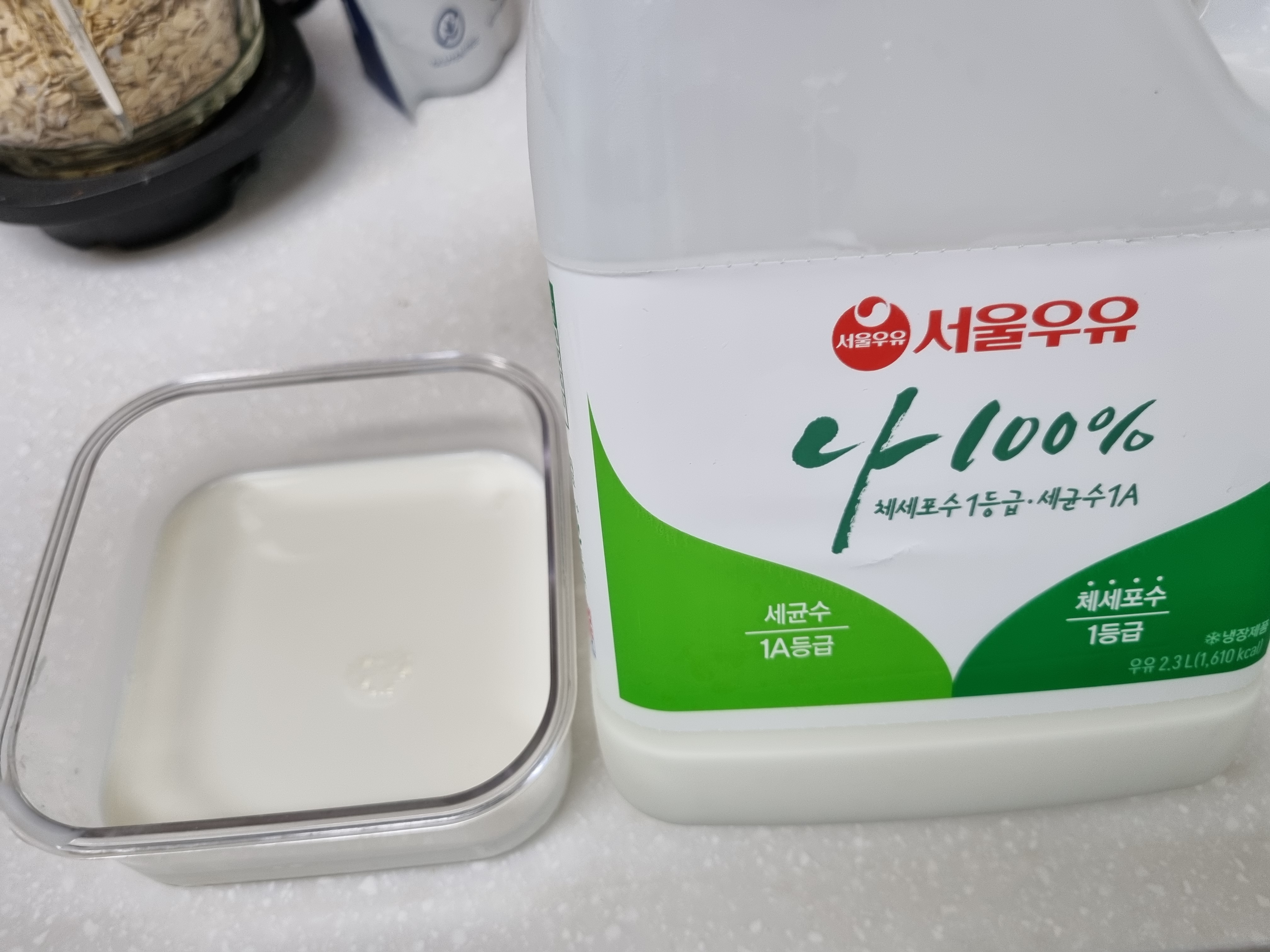 여기에 베이킹 파우더, 소금, 스테비아, 우유, 달걀 바닐라익스트랙 까지 넣고 갈아준다.