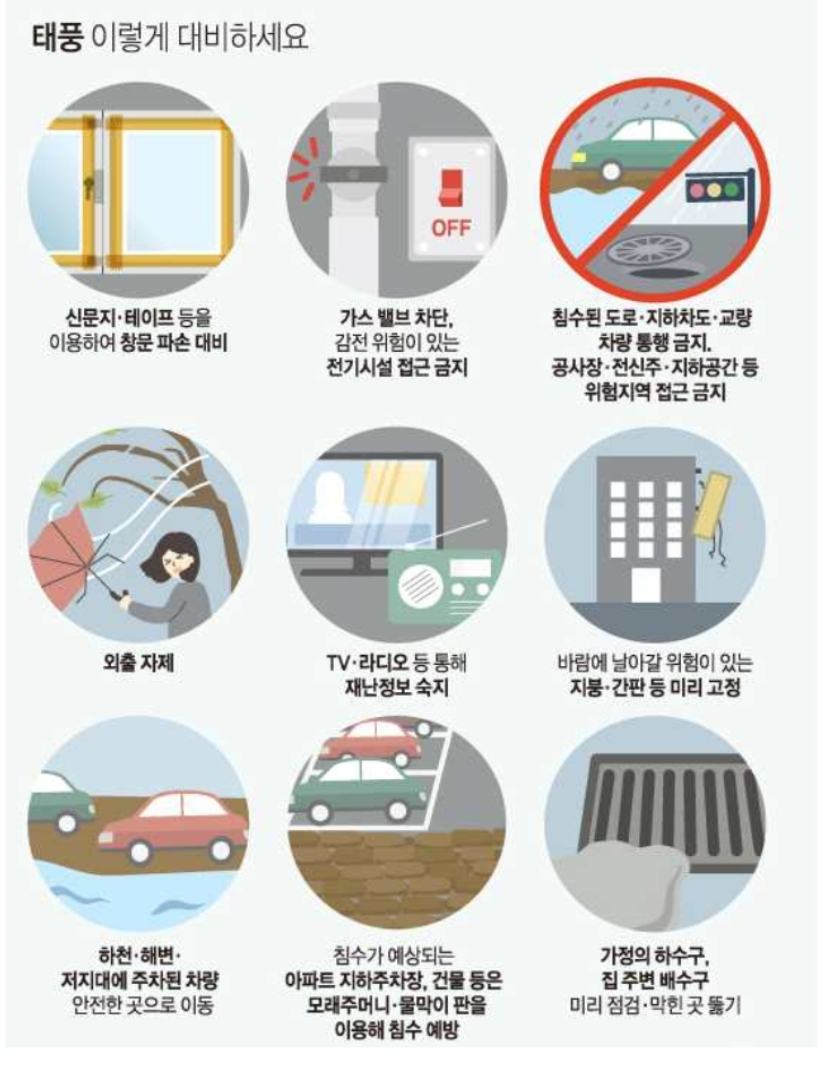 1. 태풍의 진로 및 도달 시간을 파악해서 어떻게 대피할지를 생각합니다.