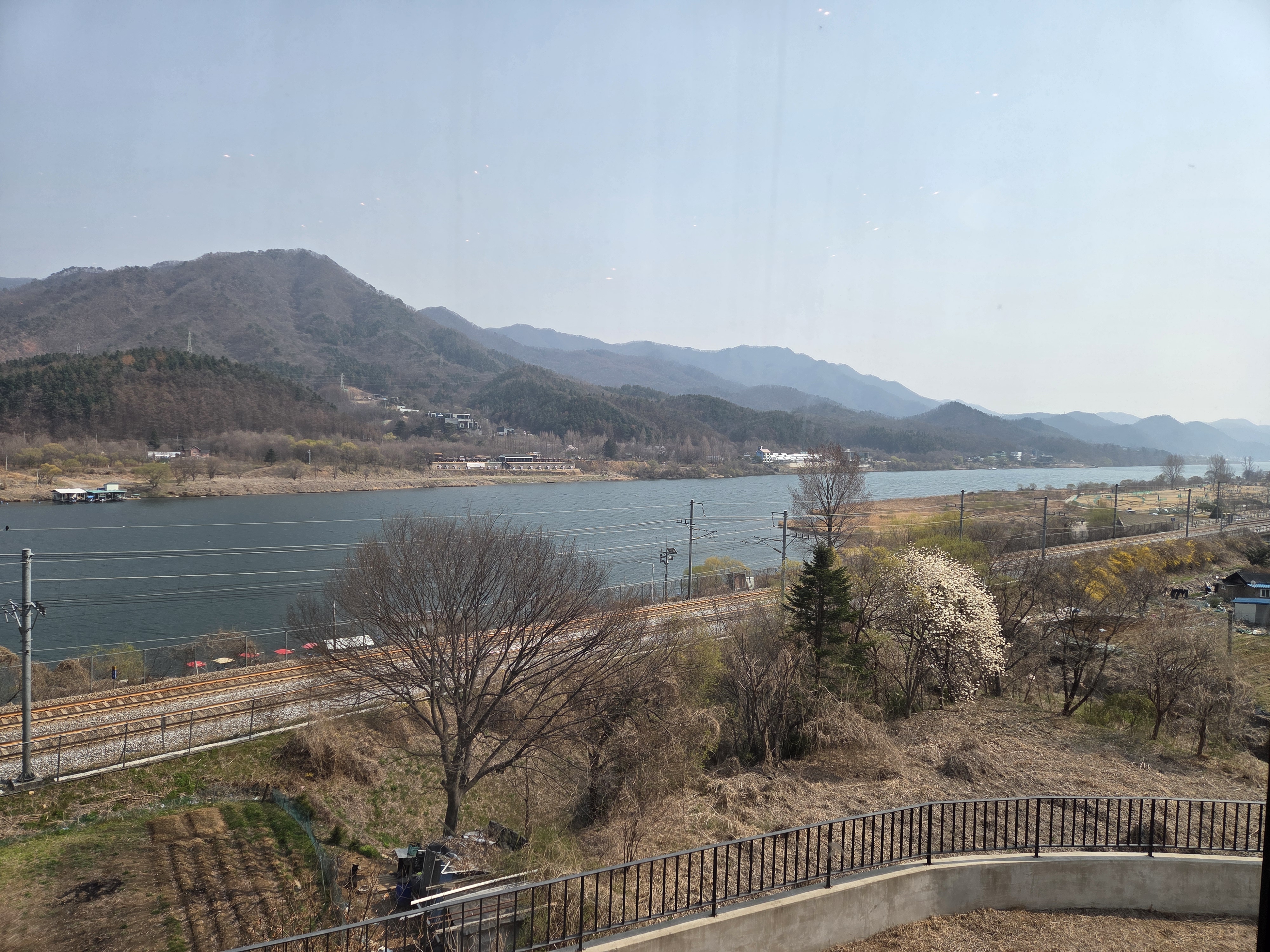 창 너머로 보이는 북한강과 기차길 풍경은 또 다른 매력으로 다가왔어요.